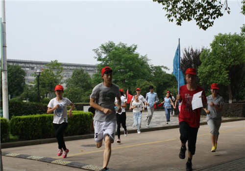 比赛开始后,校园处处都能看见一群一群奔跑的“小红帽”,综合楼门前、三食堂前、体育馆、学校大门处等地方都可以看见他们奔跑的身影。