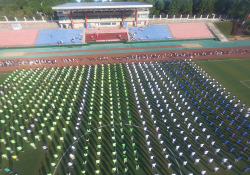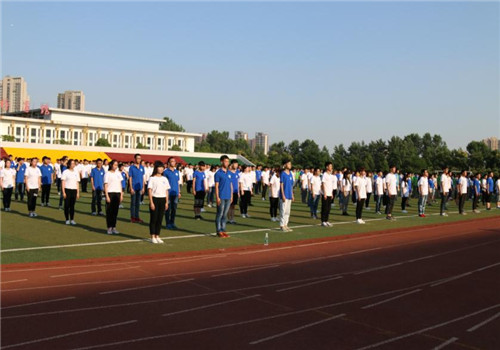 随即,陈书记宣布了第一届广播体操比赛正式开始,各班学子精神饱满、整齐划一地开始了本次比赛。这次广播操比赛引起了全院师生的极大重视,在比赛训练阶段,各班辅导员和班主任老师就根据比赛要求和内容,利用早锻炼和课外活动的时间积极组织学生进行训练,力争让每一位同学掌握节奏、力度和动作要领。