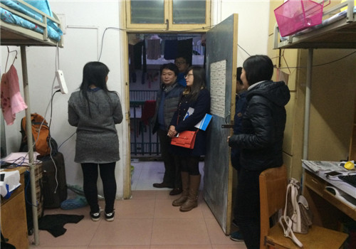(通讯员:计算机学院阮婉莹、郑瑞丰)冬雨潇歇,朔风猎猎。2015年11月30日下午17点30分,计算机学院党总支副书记陈文强、学生科科长张胜洪、当班全体辅导员及部分班主任老师们一行30多人到7栋、11栋、12栋、13栋、14栋等我院学生楼栋进行大功率电器摸查及清洁卫生检查。