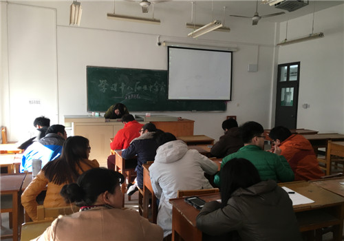 随后,吴莹老师现场组织全体辅导员和就业专员参加了时事热点知识的笔试,分单选题、简答题、论述题三部分组成。通过举行笔试让大家加深对“十三五”规划的认识,并了解期间我国即将面临的机遇和挑战、经济社会发展的指导思想和基本原则及五大发展理念。
