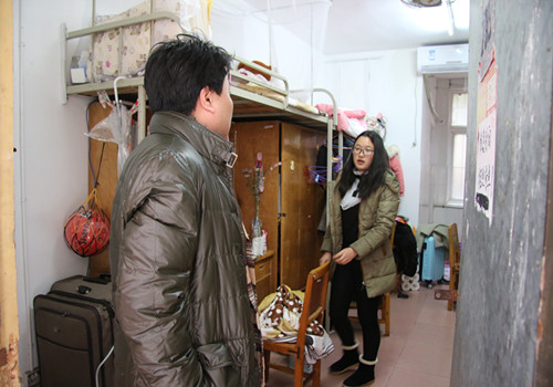 (陈书记走进寝室慰问学生)