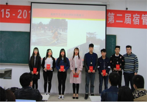 最后,陈书记对大会进行了总结,他说在过去的一年里我校学子在各个领域里都取得了大量喜人的成绩,值得鼓励。但要戒骄戒躁,再创佳绩。同时,他也肯定了我院成立宿管会的意义,宿管会不能仅靠几位宿管和学生干部。更多的是希望我们同学能够自我约束,自我管理。为我院能够更快更好的形成安全、文明、温馨的宿舍文化尽自己的一份力。