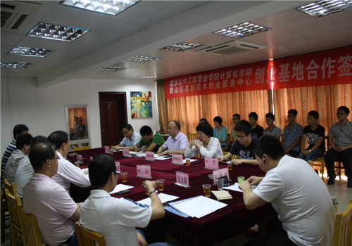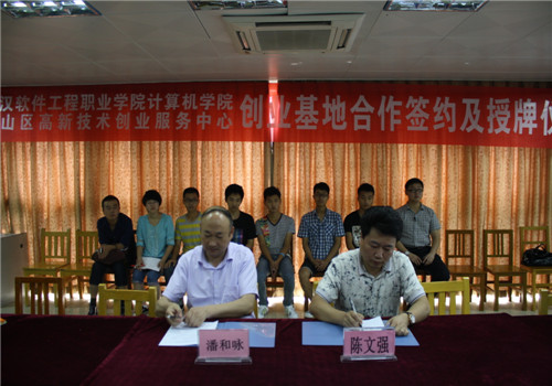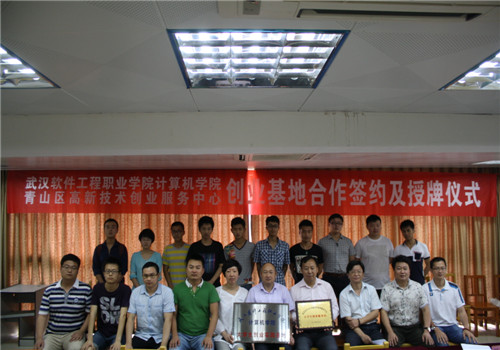 (通讯员:郑瑞丰)计算机学院与青山区高新技术创业服务中心双方为了进一步加强业务合作,共同打造属于我院学生的“创业航母”,双方于2014年5月26日上午10时在计算机学院4号教学楼6楼会议室举行了创业基地合作签约及授牌仪式。青山区高新技术创业服务中心主任潘和咏,华创源科技企业孵化器有限公司总经理孙晓进,青山区高新技术创业服务中心项目部部长赵琨,青山区科技局综合科副主任马超,青山科技企业孵化器协会总干事刘哲。武汉软件工程职业学院招就办处长梁正,校企合作处处长龚平,计算机学院党总支副书记陈文强,学生科科长张胜洪以及相关辅导员、武软微嵌公司代表、学生创业团队成员参与了此次仪式。学生科科长张胜洪主持会议。