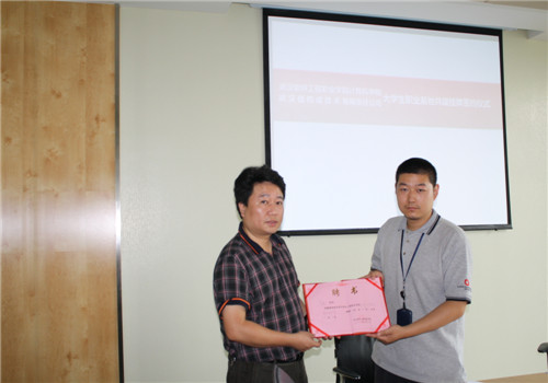 仪式最后,陈书记和胡总经理签订了双方合作协议并进行了授牌仪式,李鲲被我院聘用为职业指导师。
