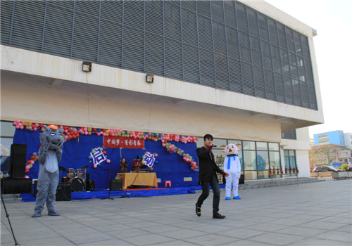 12点30许,武汉顶尖DJ、音响师在体育馆场外用魔幻的打碟技术,热情的MC口号,为等待入场的观众们提前热身暖场,可爱的灰太狼与喜洋洋2位人物玩偶随着音乐的节奏不断与候场的学生打招呼,引得了不少学生与其合影留恋。心弦吉他社的唱歌表演以及软件1307班丛山同学的劲歌舞曲燃烧着寒风瑟瑟下同学们的热情与期待。