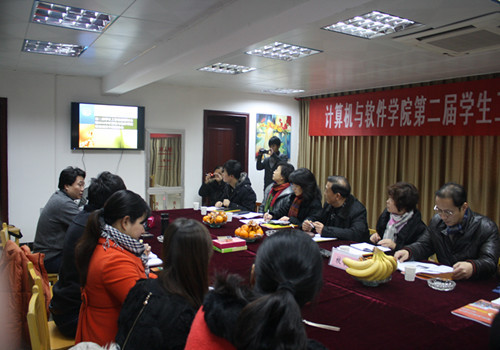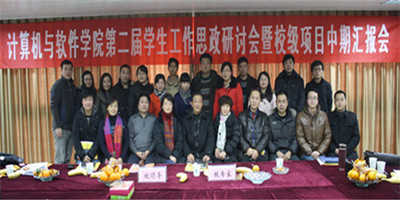 (通讯员:郑瑞丰)为了加强我院思政队伍的业务水平,并为部门及同事之间相互借鉴先进经验提供平台,形成善于研究、大胆探索、精益求精的工作氛围,2012年12月29日上午9时,计算机与软件学院在4号教学楼6楼会议室隆重召开了第二届学生工作思政研讨会暨校级项目中期汇报会。校党委副书记戴向军、科研处副处长李红艳、组织人事处副处长赵文锋、团委副书记文凡、学工处科长张永奇及我院相关领导、全体辅导员、就业专员出席了本次研讨会。会议由田甜主持。