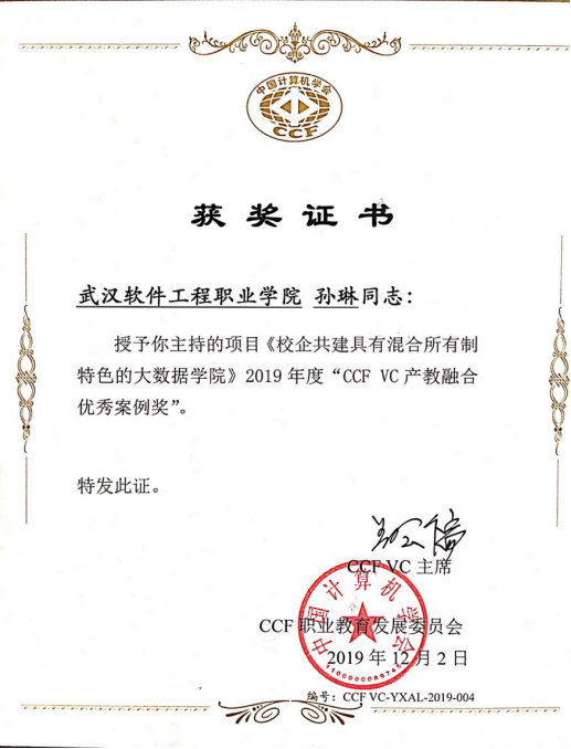 本次大会,计算机职业教育领域顶尖专家齐聚博鳌,共瞻未来职业教育发展。本次大会报告精彩、观点新锐、典型实践案例丰富。同期进行了2018年度CCF VC 职业教育科研课题结题评审会,我院孙琳老师立项的A类课题“基于师资培育云平台的数字化教学资源建设研究”顺利结题;对2019年度CCF VC 优秀职教工作者和产教融合优秀案例获奖单位进行了表彰,孙琳老师申报的“校企共建具有混合所有制特色的大数据学院”案例,被授予CCF VC产教融合优秀案例奖。