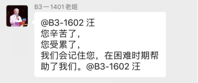 汪晓青老师下沉社区承担了2份工作,一个是在社区门口值守,对有正常理由出入小区门口的人员进行进出登记和测体温,对想要出去买菜买药的居民进行劝阻,还要手把手教老人如何使用微信加团菜的微信群、加旁边药房的微信群,告诉他们该如何在群中团菜买药,对使用手机不熟练的老人,联系他们的子女,让子女加群替老人购买。另一个工作就是帮物业的郑主任统计汇总每次团购的信息,小区说大不大,说小也不小,目前有两百多户居民居住在此,每次团购的份数都超过百份,金额上万,套餐种类繁多,价格不一,要在短时间内计算每户居民的购买费用,并汇总各套餐份数及总金额,工作量非常大,郑主任电脑操作不熟,又要统计又要收费还要负责联络商家,分身乏术,汪晓青老师便发挥专业优势,主动请缨利用专业知识替她做在线表格,登记、分类、汇总,公布在微信群中,让所有居民都可以在线查看,并且可以随时对表中数据做增删改。当团购物资送到小区后,为了减少居民被感染的风险,她又与物业一起挨家挨户为居民送菜上门。