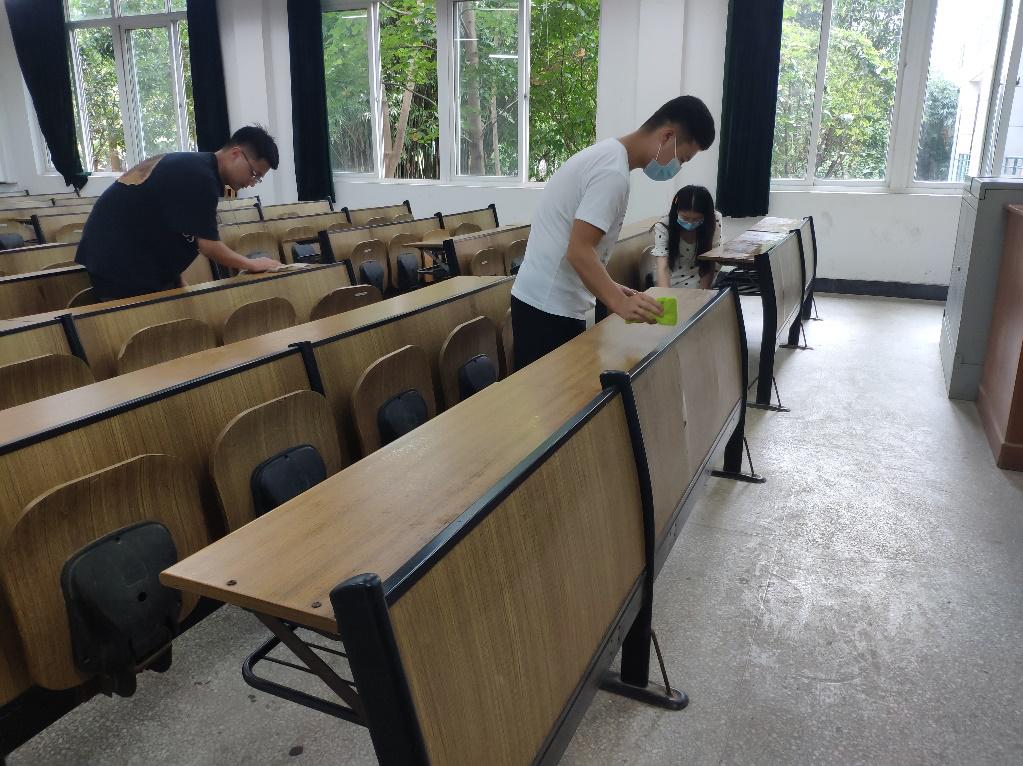 (通讯员:董诗瑶)阔别了八个多月,信息学院2018级、2019级学生终于返校了。9月11日,我院利用开学之机,结合创建文明校园工作,组织开展了主题班会和开学前大扫除。