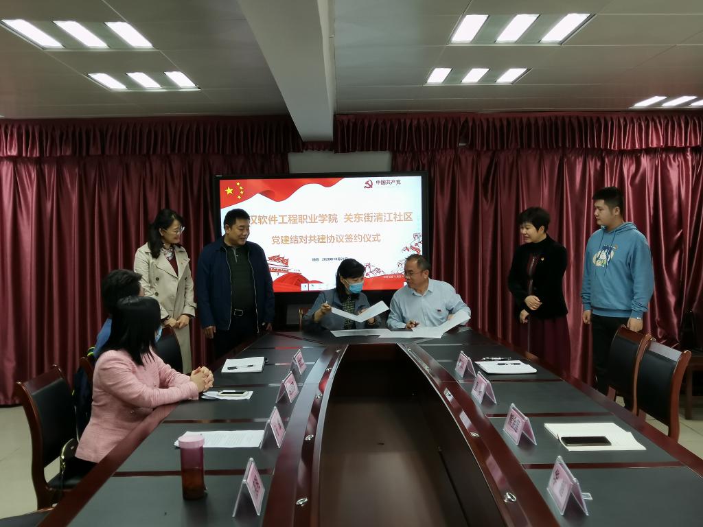 (通讯员罗艳红)为进一步加强基层党组织建设,整合学校、社区优势资源,促进学校与社区实现互助共赢。10月21日下午在我校信息学院会议室举行了“武汉软件工程职业学院/关东街清江社区党建结对共建协议签约仪式”,我校信息学院党总支作为共建单位的联络部门代表学校签署了共建协议。