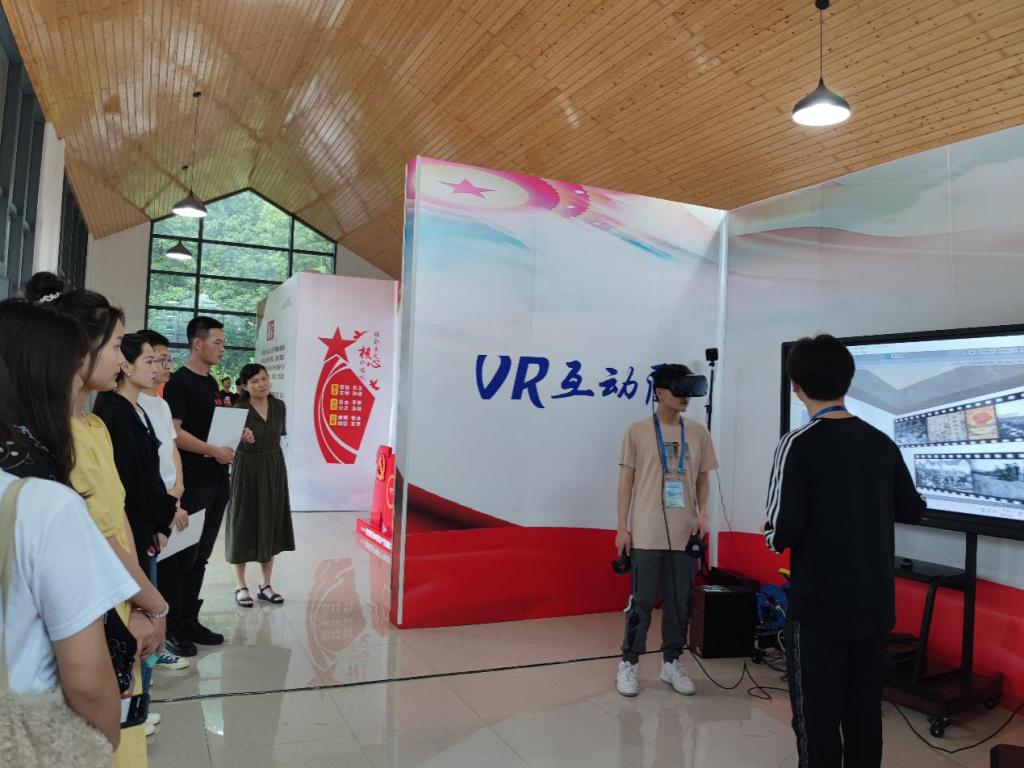 在本次党课学习中,胡英书记以展览的4个展区,26幅图片为线索,结合VR/AR技术,让同学们通过声、光、影,全面、立体地了解党的百年历程。在学习过程中,学员们积极参与,通过手机AR功能观看党史影片,穿戴上HTC设备走进虚拟博物馆,领略党的百年辉煌。