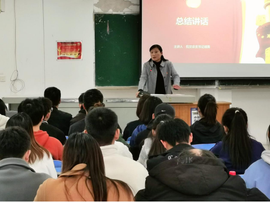 学院党总支书记胡英在总结发言中,代表院党总支对全体预备党员进行谈心谈话,她希望所有预备党员初心如磐,时刻铭记举起右手宣誓时的誓言,坚守入党时的初心,践行入党时的承诺,笃行致远;胡英书记要求全院党员认真学习贯彻党的十九届六中全会精神,深刻理解党百年奋斗的重大历史意义,不忘初心,坚定信念,脚踏实地,勇担使命,奋斗新时代,奋进新征程。