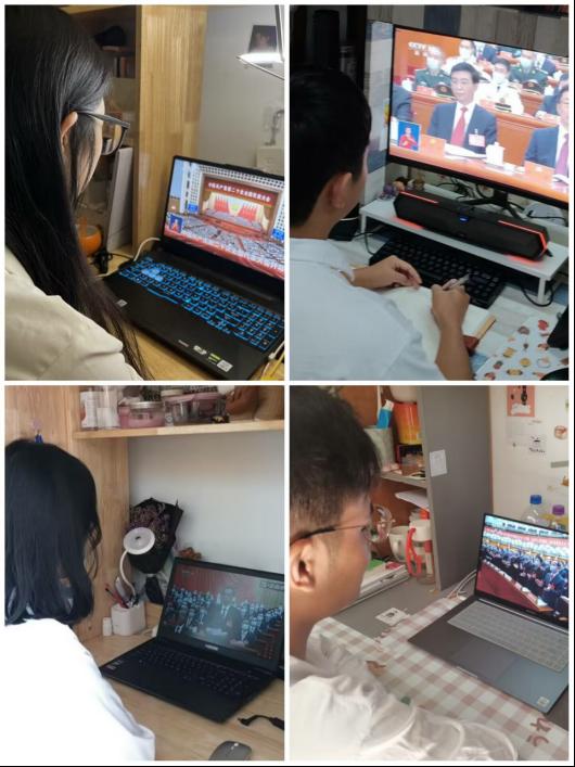 因为疫情防控原因,学院团学干部、预备党员自行在宿舍观看直播。即使在宿舍,大家也认真收看开幕会、认真做笔记。