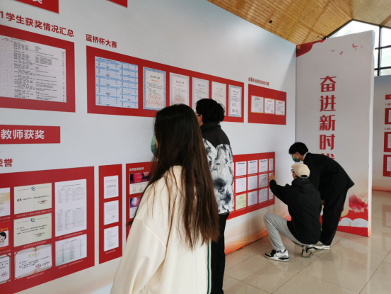 本次展览分为 “专业优化 数智赋能”“产学合作 协同发展”“深化教改 师生相长”“知行合一 实践育人”“科教融合 提升技能”“桃李满园 共谱华章”6个部分,分别介绍了我院智能信息技术专业群以“骨干校”“优质校”“双高建设”为依托的建设发展历程、”质量工程”实施情况、师生获奖情况、教师科研成果及往届优秀毕业生发展现状等。展览图文并茂,内容丰富,开展以来吸引了不少在校学生、各支部老师前往参观。