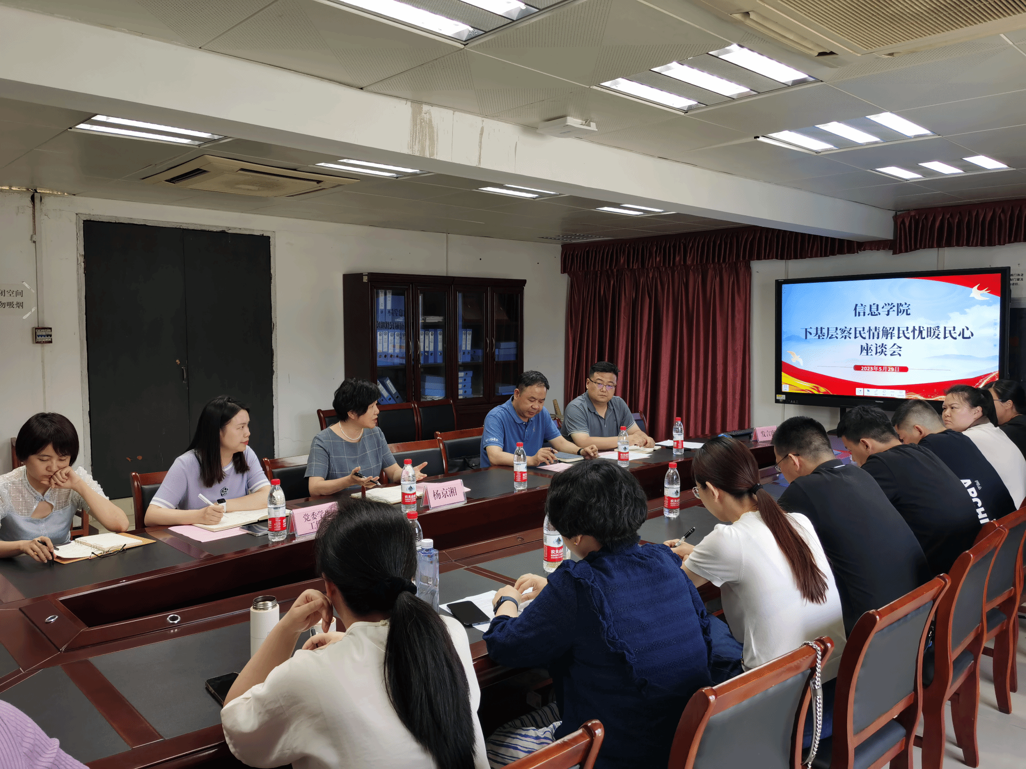 (通讯员:张素君)为全面贯彻全国高校毕业生青年就业创业工作会议精神,落实党员干部下基层察民情解民忧暖民心的实践要求,2023年5月29日下午副校长杨京湘到信息学院调研2023届毕业生就业工作,促进毕业生更高质量就业,党委学工部副部长高娟、信息学院院长罗保山、党总支副书记张胜洪、副院长周雯及各科办室主任、教研室主任及2023届全体辅导员参会。