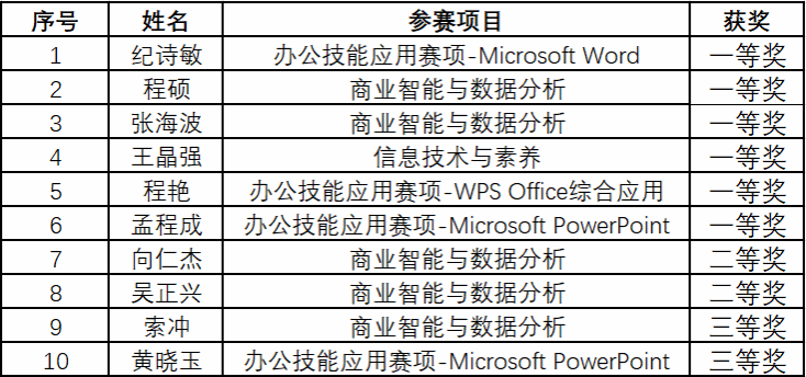 获奖名单如下: