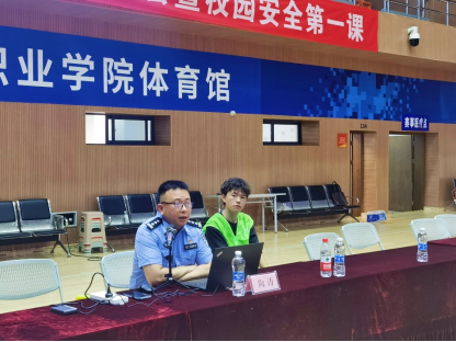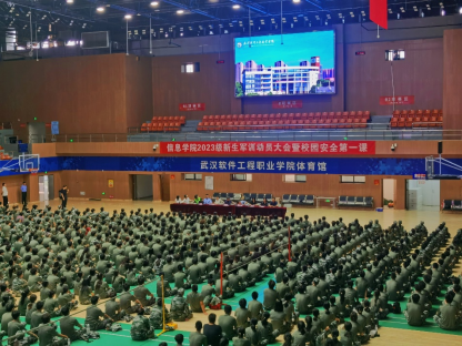 (通讯员:董诗瑶)9月14日下午2:30,信息学院2023级新生军训动员大会暨校园安全第一课在校体育馆隆重举行,来自五湖四海的900余名莘莘学子齐聚一堂,共上“开学第一课”。信息学院党总支书记万志勇、院长罗保山、党总支副书记胡寒玲及学生科全体新生辅导员共同参加本次大会。保卫处特别邀请了武汉市公安局文化保卫局二大队陶涛警官为我院新生主讲“校园安全第一课”。