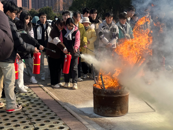 通过组织师生开展消防安全实操演练,提高了广大师生在实际操作中应对突发事件的能力,确保在紧急情况下能够迅速、有效地扑灭火源,保障学院师生的人身安全。