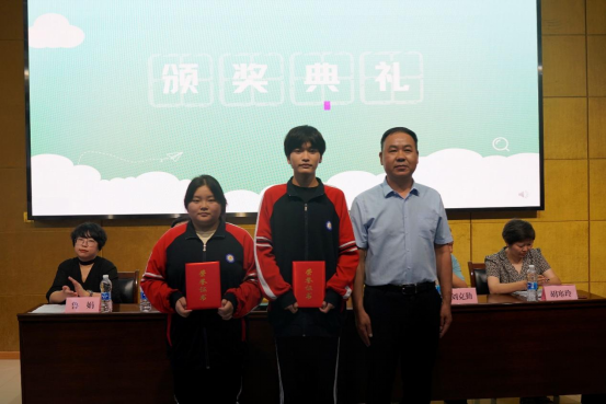颁奖环节,副校长罗保山、党总支书记刘克勤分别为优秀毕业生、市级优秀学生颁发荣誉证书并合影留念。计考21304班刘胜同学作为优秀毕业生代表发言,他满怀深情的表达了对学校的不舍、老师的感谢、父母的感恩,信心满满的畅想了对未来的期盼与规划。