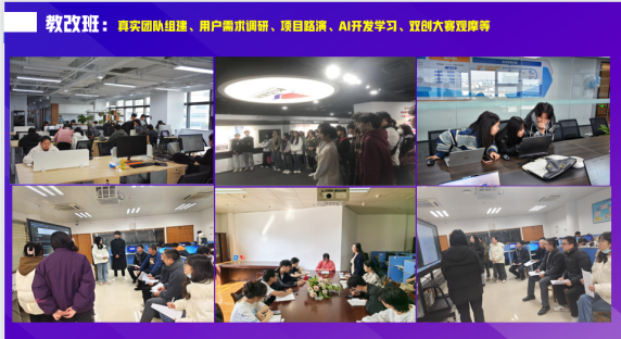 周俊杰教授回顾总结了教学改革创新班一年的成果与挑战,深感欣慰与自豪。2023年7月起,武汉软件工程职业学院信息学院为响应教育部现场工程师专项培养计划,通过“引企入教、实境育人,AI+赋能、因材施教”等模式创新,对标专业现场工程师培养,以岗位工作标准、流程、方法、规范为主线,重构专业人才培养体系,基于真实场景项目培养软件现场工程师。并运用AI技术构建学生成长的数字化管理平台及开发系列智能教学工具,赋能教师高效教学和学生个性学习,从而提升技能人才的培养质量。一年来,通过学校和企业导师共同努力,学生们在团队合作、项目实践中不断挑战自我,取得了显著的学习成果。