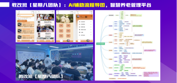 参加综合考核的班级是软件现场工程师教改创新2314班,共五个项目团队展示了设计作品。分别是萤欣团队的趣游项目、星期八团队的乐养项目、逐浪团队的考勤之眼项目、五乐团队的易社区项目、路远团队的双碳排放MES管理项目。