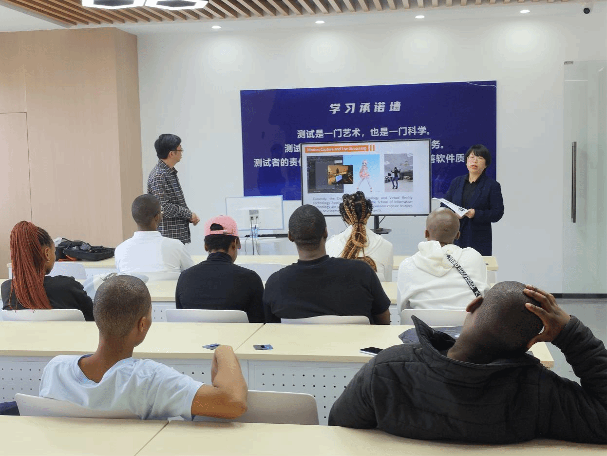 (信息学院 通讯员:张松慧)2024年10月28日下午,我校信息学院数字工匠产业学院人工智能体验中心迎来了一批特殊的客人——21位来自南非的国家奖学金公派留学生。此次参观旨在增进国际学生对中国高科技发展特别是人工智能领域的了解,并促进学术交流与文化交融。