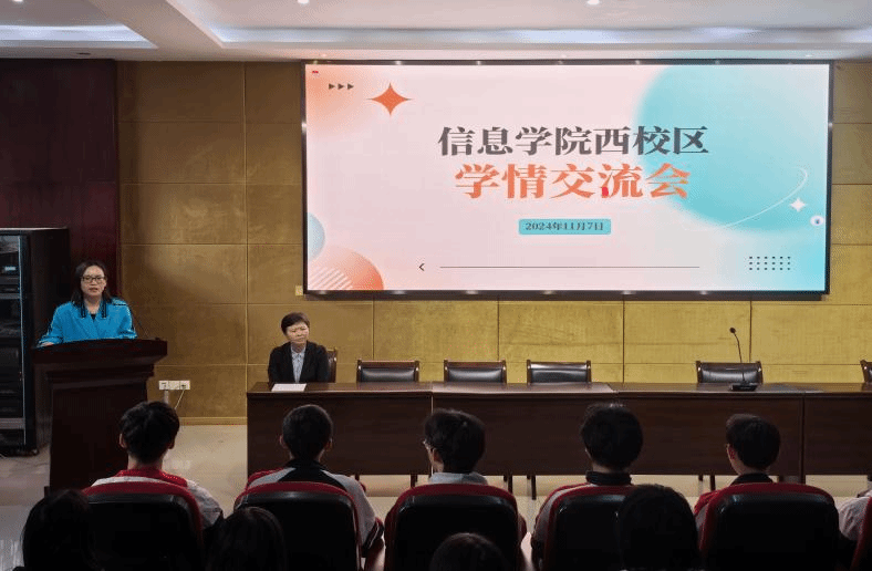 (通讯员:龙宇航)2024年11月7日下午,信息学院西校区学情交流会在西校区一楼阶梯教室举行。此次会议旨在加强师生之间的沟通与交流,及时了解并解决学生在学习和生活中遇到的问题,加强班风学风建设,提升教学质量。信息学党总支副书记、学生科科长、班主任和辅导员代表以及西校区全体学生参加了本次学情交流会。