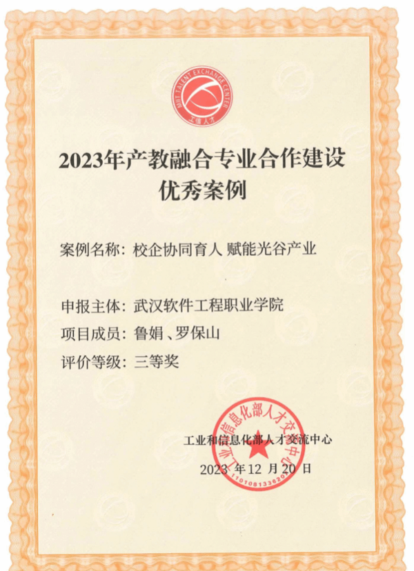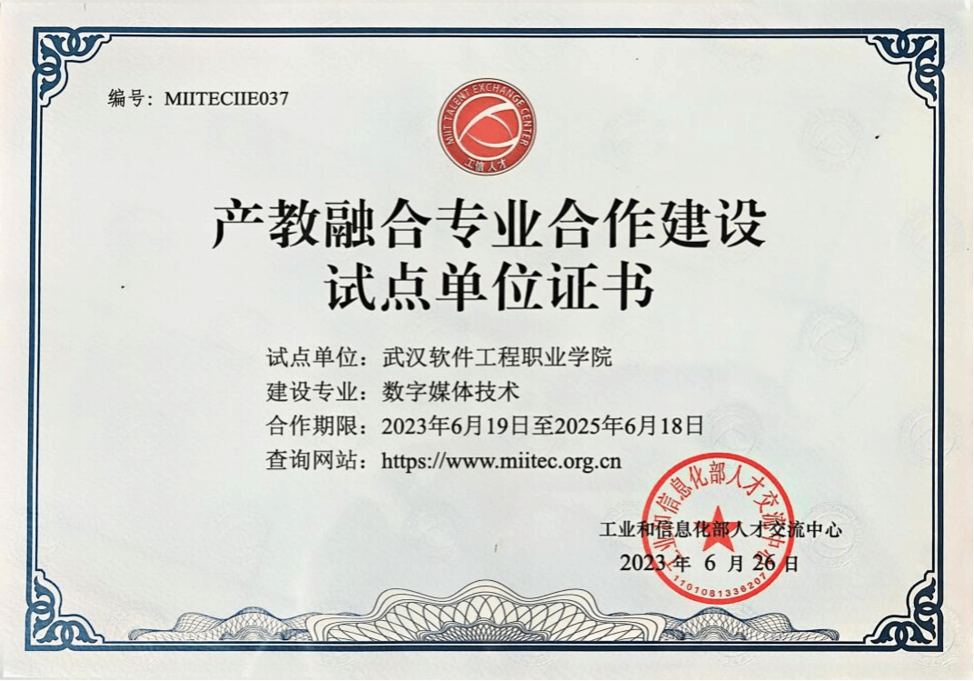 会议公布了产教融合专业合作建设试点单位名单和产教融合优秀案例获奖名单。信息学院数字媒体技术专业作为我校唯一建设专业,在经过为期2年的产教融合探索和专业建设后,成功获批产教融合专业合作建设试点建设专业。建设期间,数字媒体技术专业积极探索产教融合模式、深入研究校企合作协同育人,创新了如“信息学院-大势智慧公司数字孪生学术俱乐部”、“武汉湾流现代学徒制班”等多种产教融合新方法。同时,案例《校企协同育人 赋能光谷产业》获产教融合专业合作建设优秀案例奖。