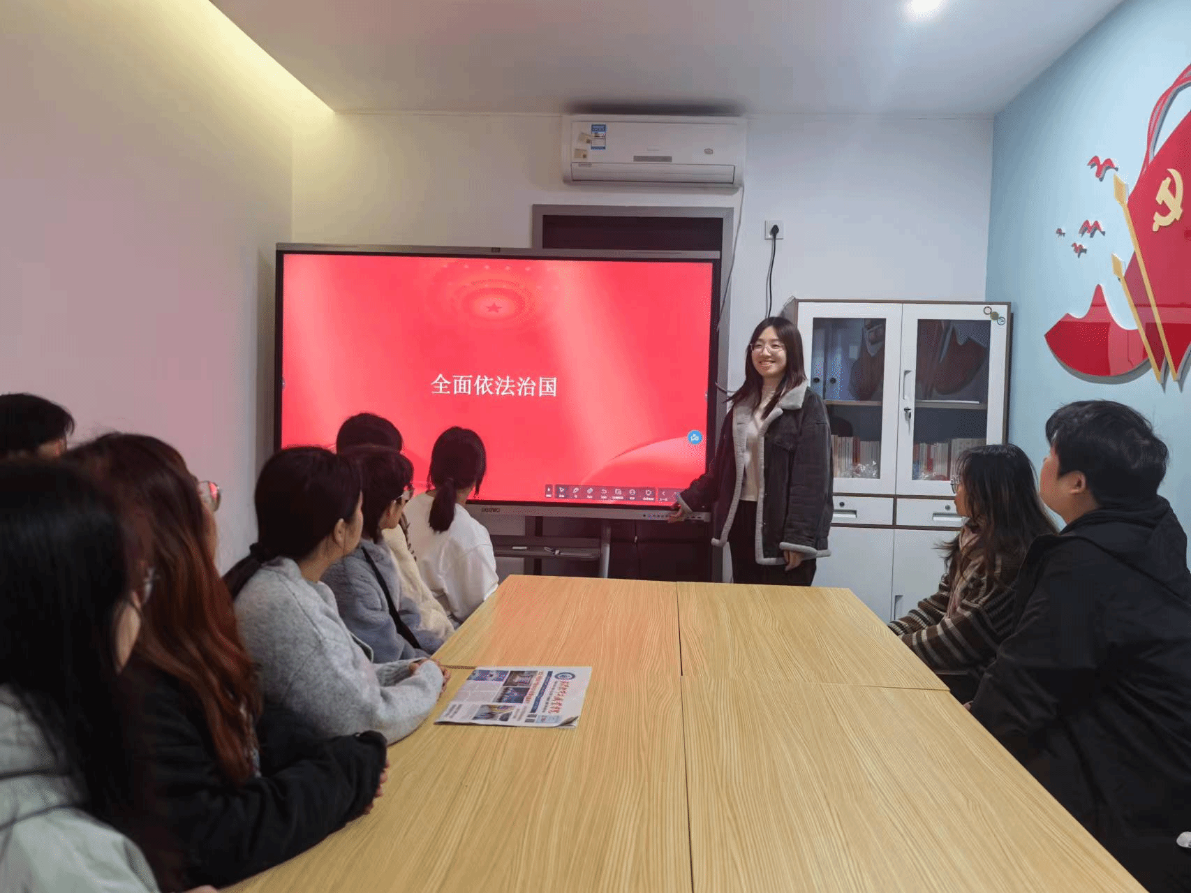 程老师首先强调了全面依法治国的必要性。她指出依法治国不仅是维护国家长治久安、保障人民权利的根本途径,更是实现国家治理体系和治理能力现代化的必然要求。在当前国际环境复杂多变、国内社会改革进入深水区的背景下,依法治国更是成为了党和人民共同的选择。接着,程志颖老师详细讲解了推进全面依法治国的具体措施。在宣讲过程中,程老师结合生动案例,例如宪法如何守护我们的一生、民法典对于完善中国特色社会主义法律体系的作用等,将复杂的法律知识转化为通俗易懂的语言,使同学们在轻松愉快的氛围中掌握了全面依法治国的核心理念和实践要求。她还鼓励同学们要自觉学习法律知识,增强法治观念,做尊法学法守法用法的模范。