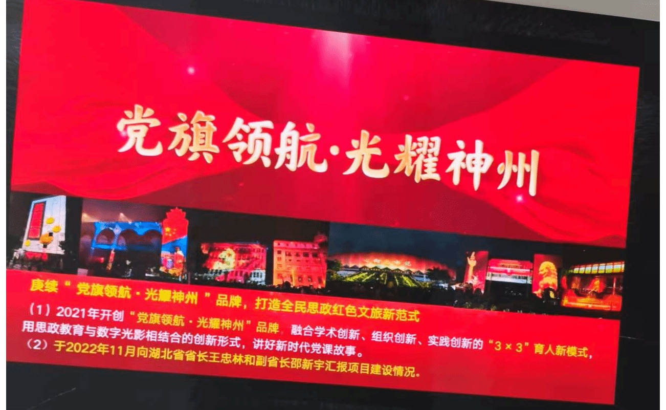 在思政教育与艺术设计融合方面,打造的“党旗领航·光耀神州”品牌,将思政教育与数字光影相结合,通过创新的形式讲好新时代党课故事,为全国思政红色文旅提供了新范式。