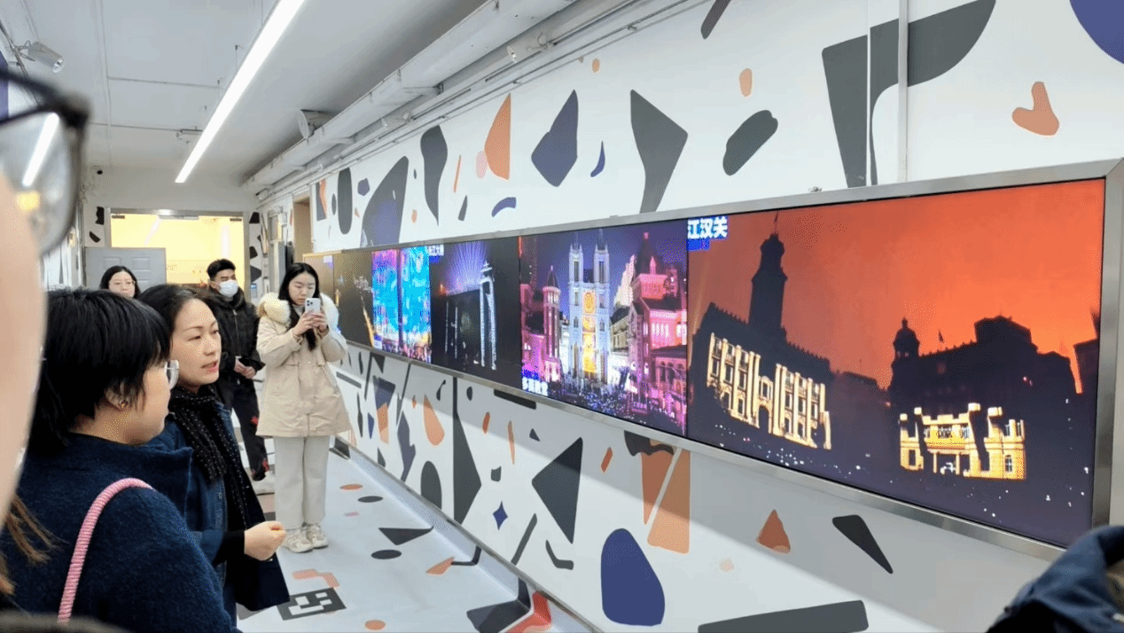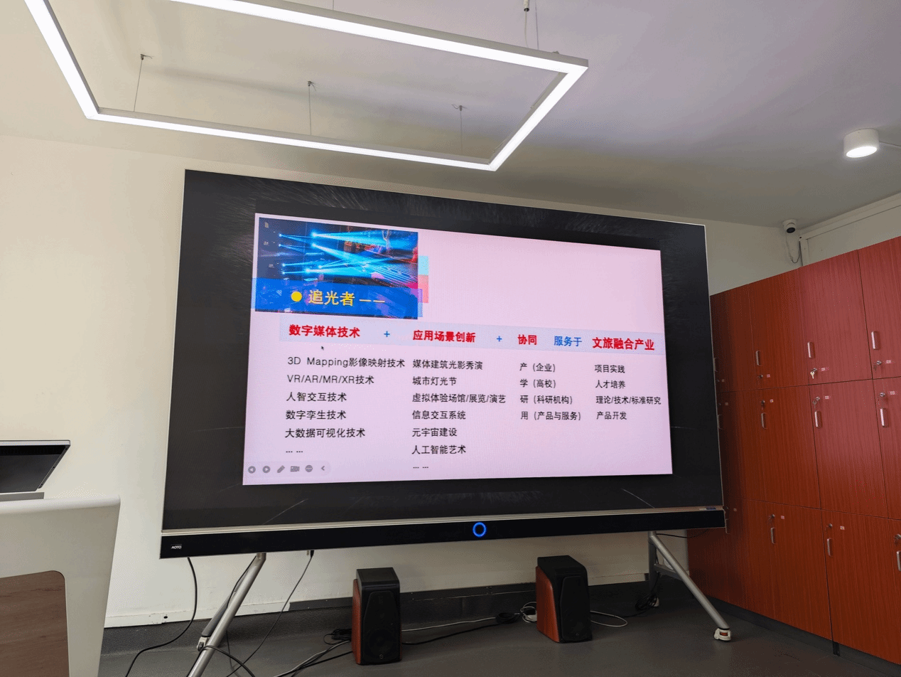 随后,调研团队了解到工程中心在数字光影技术领域的深厚积累和卓越成就。作为中国“数字光影+领域“产学研用协同的中坚力量,深化产教融合、科教融汇,与企业紧密合作推出了一系列虚拟交互装置、媒体建筑等产品与服务。在学术研究上,承担了诸如《地下空间数字景观营造技术研究》《长江流域水生生物数字孪生生成关键技术研究与应用示范》等重要科研项目,展现出在数字技术与艺术设计深度融合方面的强大科研实力。在AI赋能研究生教育方面,学院基于自研的“ARTI Designer”平台,开展产学研用一体化实践,为培养学生的创新能力提供了新的路径和方法。在本科教学方面,3D Mapping建筑投影艺术设计虚拟仿真实验课程,作为省级一流本科课程,为学生提供了实践操作和创新思维培养的平台,让学生能够将理论知识与实际项目相结合。