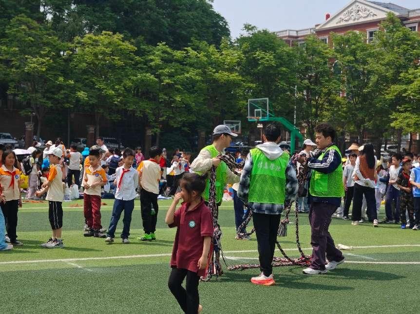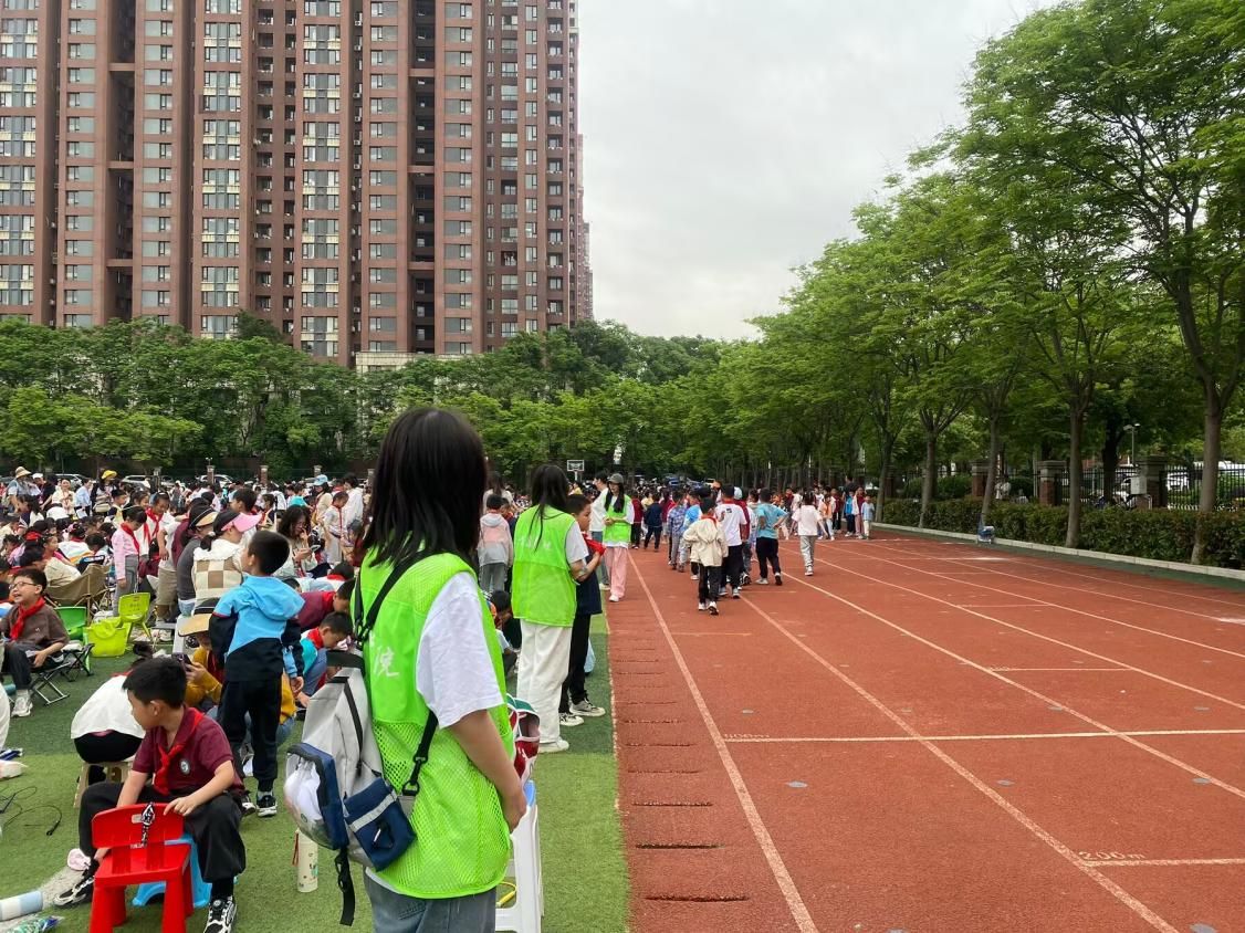 运动会现场洋溢着欢乐温馨的氛围,一个个亲子组合携手踏上赛场,共同迎接趣味挑战。志愿者们穿梭其中,全力保障赛事顺利进行。在 “背对背夹球跑” 比赛区域,志愿者们为家长和孩子分发比赛用球,仔细讲解比赛规则,确保每一组家庭都能安全、有序参赛;发令声响起后,志愿者们紧跟队伍奔跑,时刻关注选手动态,防止选手们摔倒。“亲子拔河比赛” 环节,志愿者们摆放拔河绳的位置,调整参赛选手的姿势,在比赛中为双方选手加油鼓劲,密切关注选手们的状态,防止因用力过猛而摔倒······在为期三天的志愿服务过程中,用温暖的守护为亲子互动保驾护航。