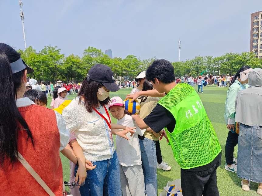 除了组织比赛,志愿者们还化身 “秩序守护者” 与 “欢乐记录者”。他们在观众区引导家长有序观赛,维持现场秩序;用手中的相机捕捉亲子间默契配合的精彩瞬间,记录下孩子们天真烂漫的笑容和家长们欣慰的神情。“看到家长和孩子一起努力完成比赛,这种温馨的画面特别让人感动,再辛苦也值得!” 志愿者张乐婷的话语道出了所有志愿者的心声。
