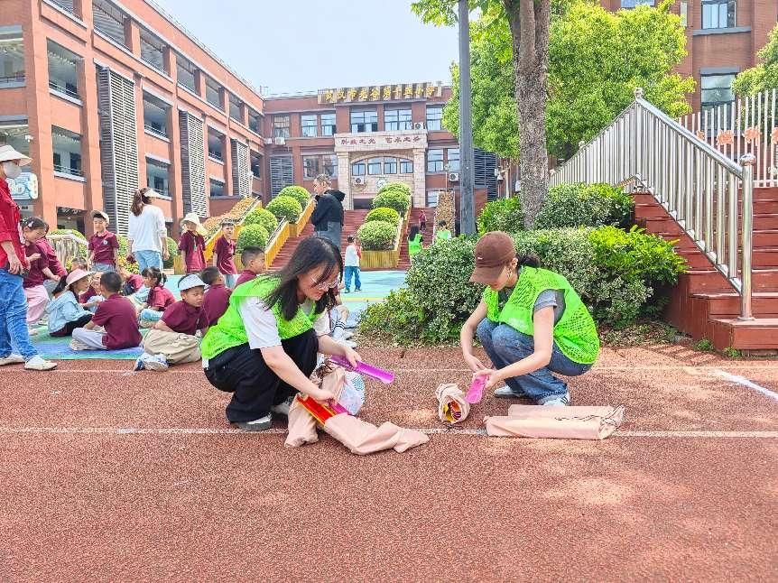 (通讯员:谢毓婷 梁好)为深化高校服务社会的职能,践行新时代志愿服务精神,同时助力光谷十五小培养学生体育精神、营造积极向上的校园氛围,应光谷十五小邀请,信息学院主动担当,精心组织志愿者团队,为光谷十五小亲子趣味运动会提供坚实服务保障。此次志愿服务不仅是高校资源反哺基础教育的生动实践,更是为青少年健康成长注入温暖力量,搭建起校园间沟通交流的桥梁,以实际行动诠释社会责任与青年担当。4 月 23 日至 25 日,共计60人次的志愿者队伍每日清晨 8:00 准时奔赴光谷十五小,直至下午 16:00,始终坚守岗位,成为运动会上一道亮丽的风景线。