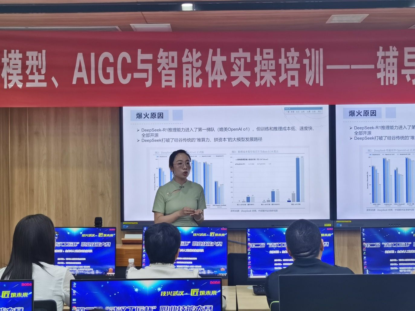 活动中,吴梦婷老师围绕大模型、AIGC与智能体三大核心板块,为辅导员们带来了一场兼具理论深度与实操价值的知识盛宴。在大模型部分,吴老师系统介绍了当前市场上主流的大模型,重点讲解了DeepSeek的使用方法,并演示了如何巧妙利用多个大模型搭配协作,高效完成PPT制作、excel数据处理等日常办公任务,为辅导员们打开了办公效率提升的新思路。