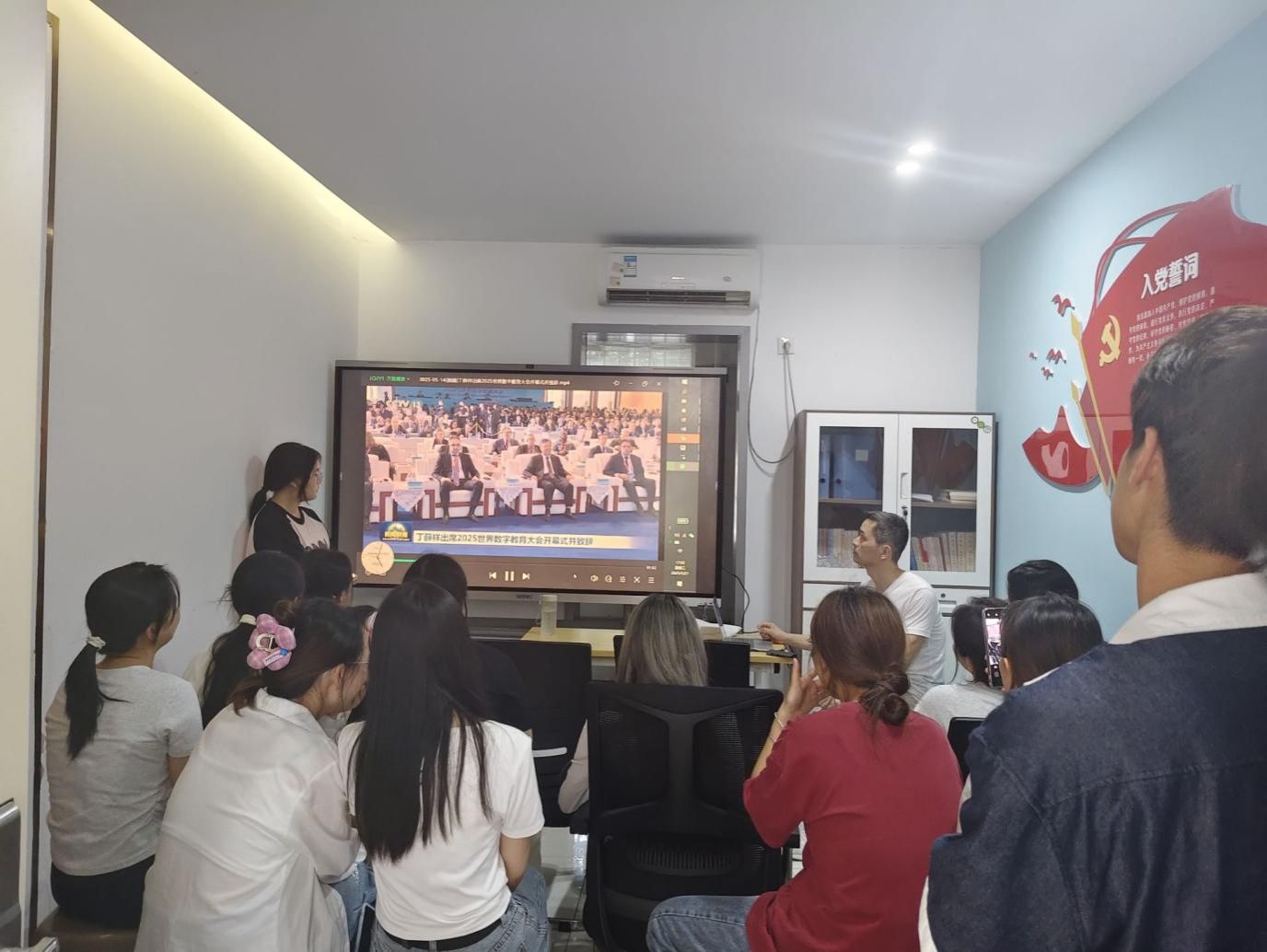 在深入解析专业特色后,刘老师带领同学们一起观看第三届世界数字教育大会新闻视频,围绕“教育发展与变革:智能时代”的大会主题,重点解读联合国教科文组织人工智能与教育教席主持人黄荣怀提出的“智能时代的学习者,应掌握主动和终身学习、灵活就业的适应性等能力”等观点。刘老师着重强调“兴趣驱动学习”的理念,以数媒专业毕业生中“从兴趣社团成员到技术骨干”的成长轨迹为例,鼓励学生保持终身学习的求知欲,挖掘自己的专业潜能,将“求知求实,学以致用” 的教育理念转化为持续精进的行动自觉。