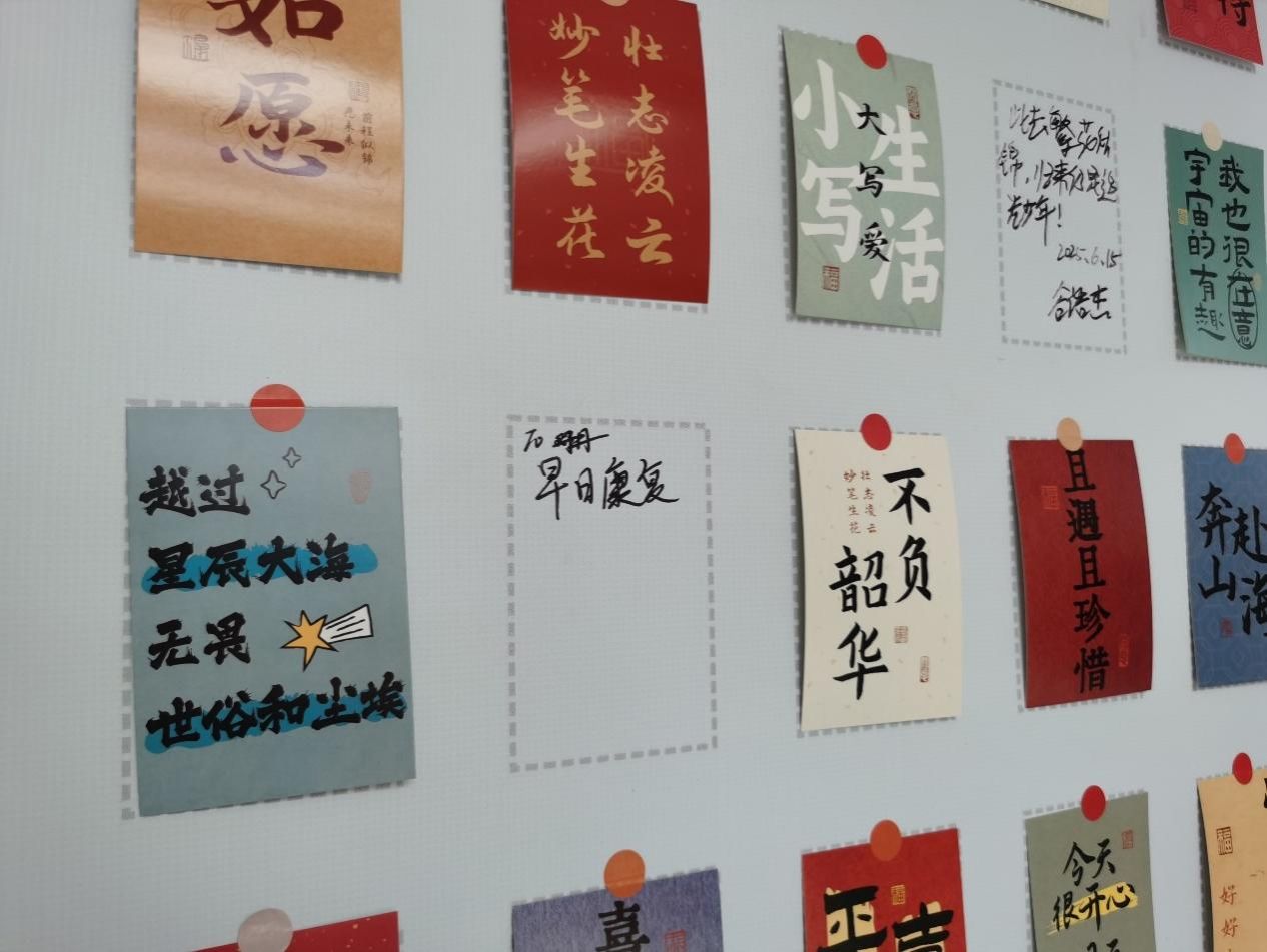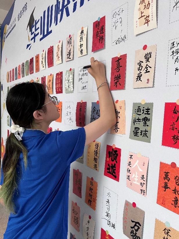 在学院特别设置的签名墙处,学生们带走了满载学院祝福的卡片,留下了对母校、对自己的祝愿。合影墙处也有不少同学打卡,有合影的有自拍的,据现场志愿者统计,短短两小时内,合影墙前留下了超过100张照片。