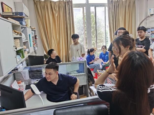 早在6月13日,学院便已进入“毕业季模式”。四号教学楼的办公场地被重新规划布置,整齐排列的文件袋里装着学生们三载青春的见证材料,大门上、走廊里悬挂的“欢迎回家”横幅与精心设计的毕业主题展板相映成趣,精心的筹备背后诉说着学院对毕业生的温情祝福。