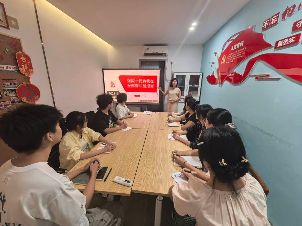 (通讯员:刘文博)为引导青年学子厚植家国情怀,明晰新时代爱国担当,9月17日下午6:00,信息学院“红色讲堂”在12栋一站式学生社区101室顺利开讲,本次讲座特别邀请马克思主义学院专任教师张如洁担任主讲人,以“强国一代有我在 爱国奋斗显担当”为主题,为在场10名预备党员带来一场兼具思想深度与实践指导意义的爱国主题教育课。