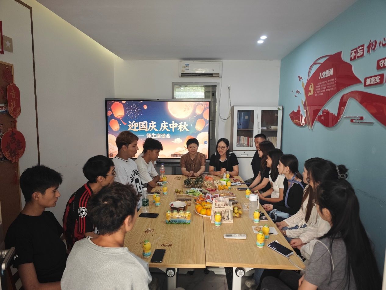 (通讯员:董诗瑶)9月29日下午2:30,信息学院在12栋“一站式”学生社区举办“迎国庆·庆中秋”师生座谈会。学院党总支副书记、学生科长、团总支书记、辅导员代表与来自三个年级的少数民族学生代表齐聚一堂,共同参加本次座谈。