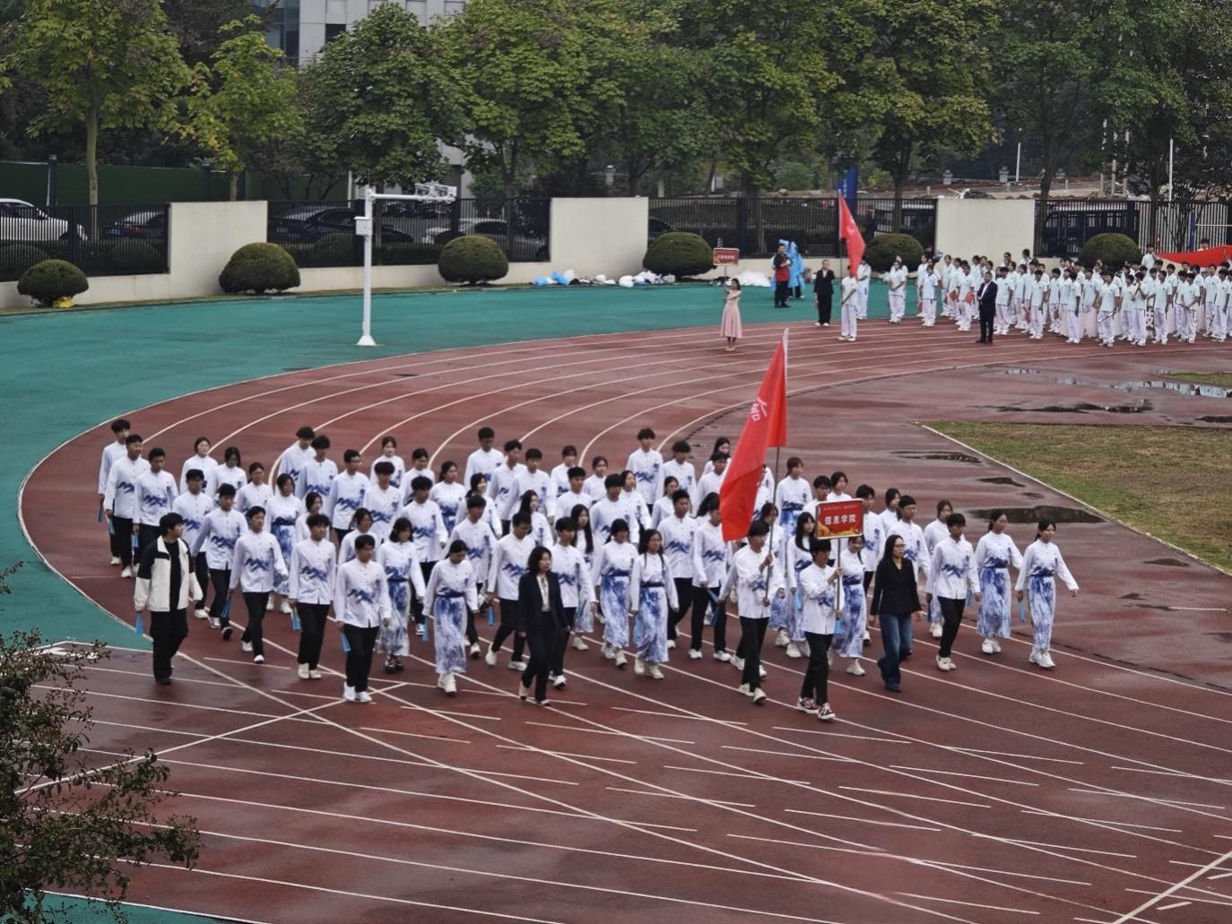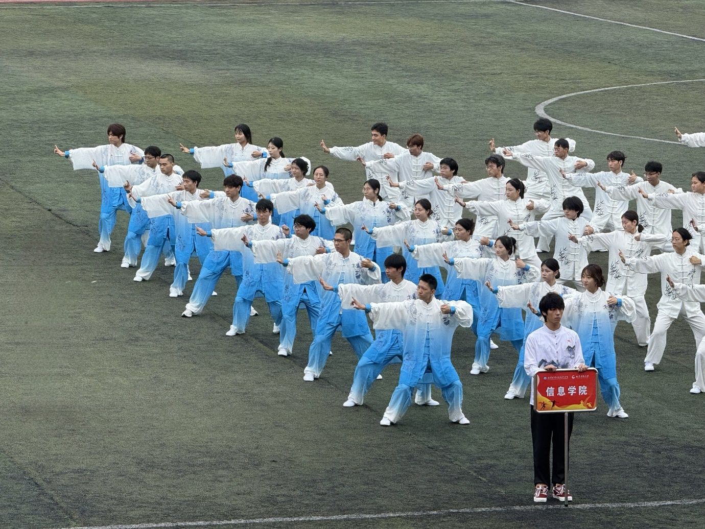 紧随其后的是健气功八段锦展示赛。经过多日训练,同学们动作舒展连贯、整齐划一、身姿挺拔、眼神坚定,尽显昂扬向上的精神状态,成为开幕式中一道引人注目的风景线。