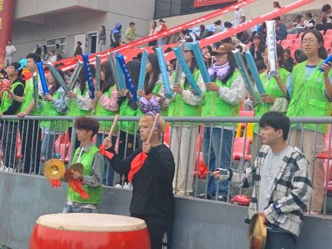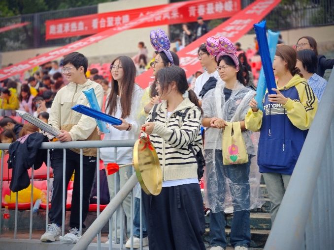 尽管运动会期间连续两日阴雨绵绵,细密雨丝却未浇灭赛场内外的热情,比赛始终按计划有序推进。赛场上,信息学院运动员们斗志昂扬,面对强劲对手毫不怯场:短跑选手全力冲刺,耳畔风声与加油声交织;长跑选手咬牙坚持,用耐力诠释体育精神;跳跃、投掷项目中,每一次蓄力与发力都凝聚着拼搏的决心。看台上,同学们热情高涨,用掌声和欢呼声为运动员加油助威;志愿者们忙碌在赛场各个角落,不仅为运动会提供有力的后勤保障,还主动充当 “氛围组”,摇旗呐喊带动现场气氛,助力赛事顺利推进。