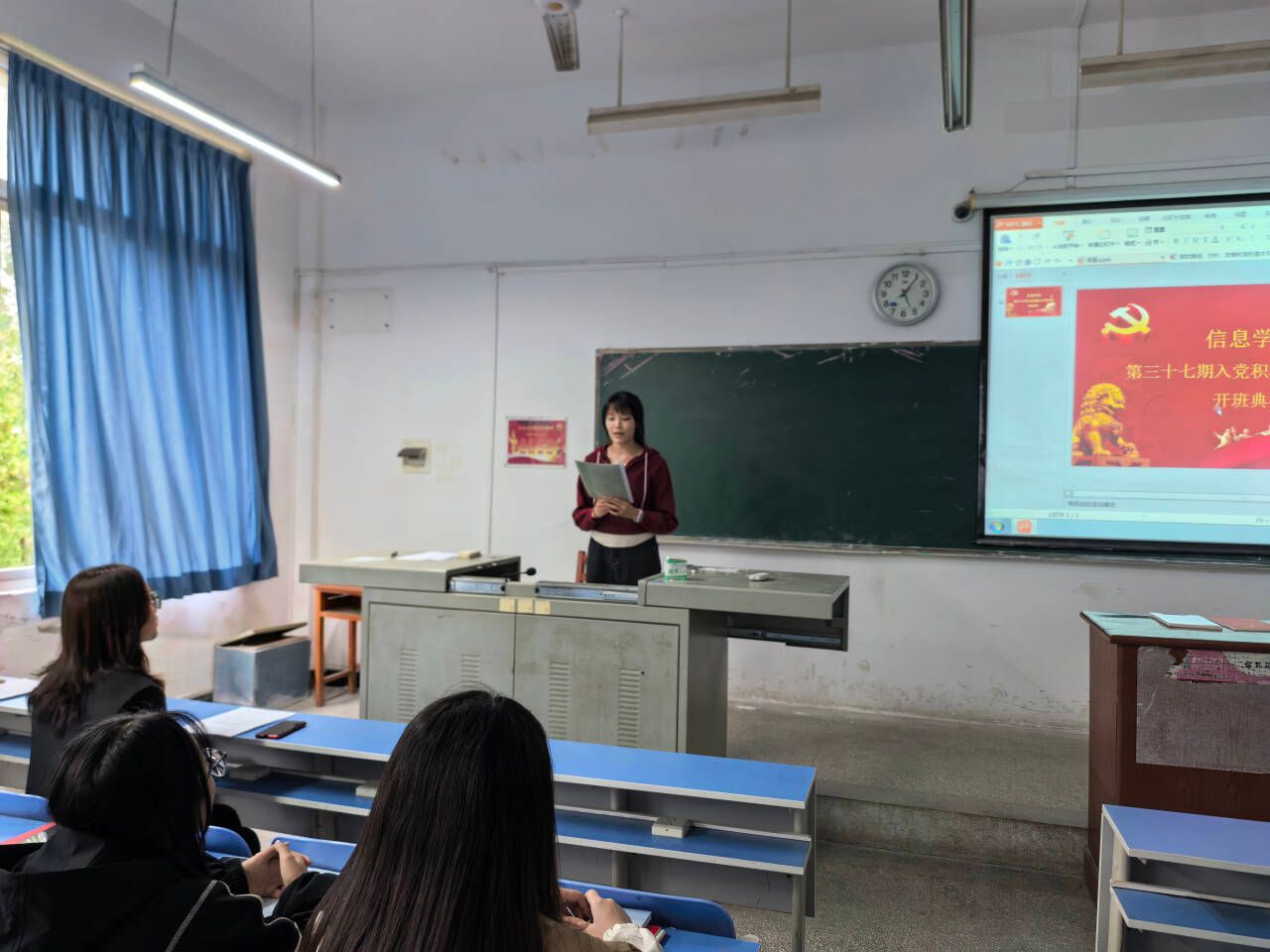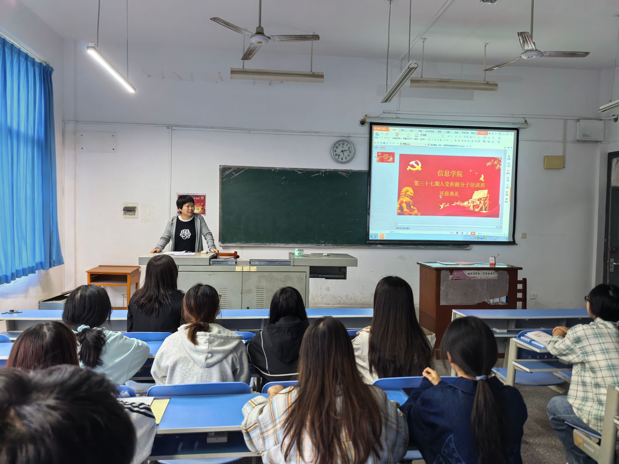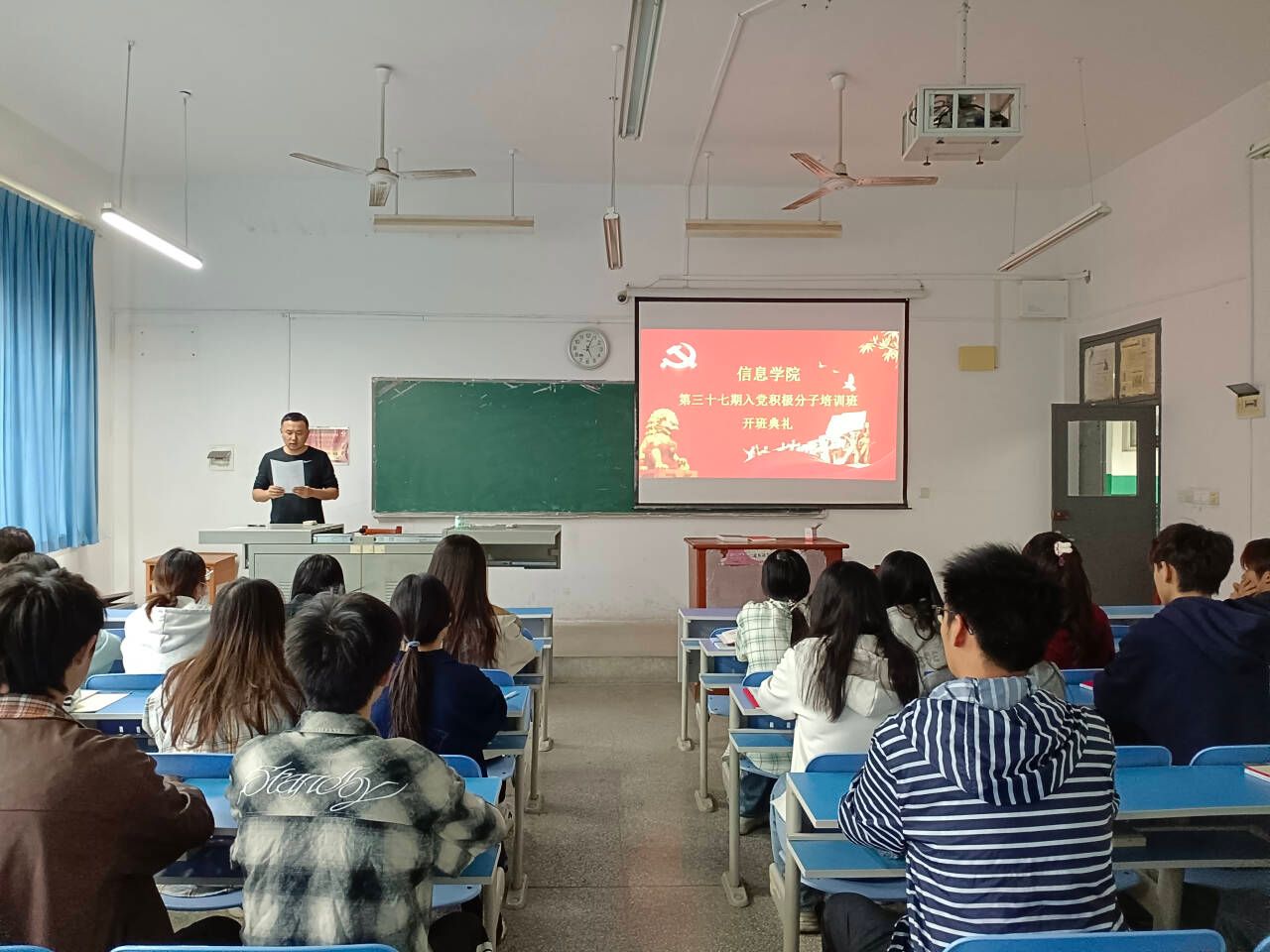 (通讯员:刘文博)10月13日下午5:00,信息学院第三十七期入党积极分子培训班开班典礼在5507教室举行,信息学院领导、学生党支部书记、辅导员及24名入党积极分子共同参加。