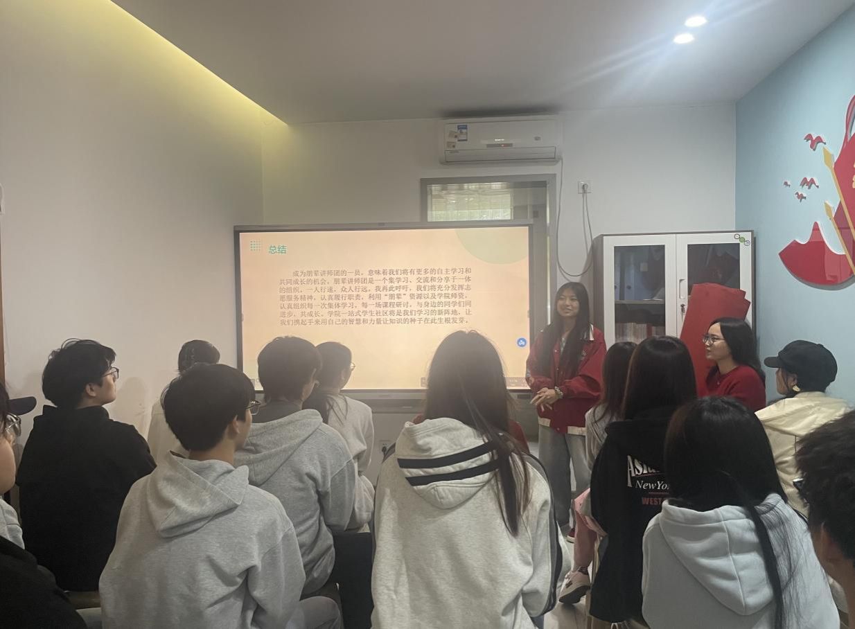 活动最后,学生科长进行总结,引导大家利用“朋辈”资源以及学院师资,认真组织每一次集体学习、每一场课程研讨,与身边的同学同进步、共成长。