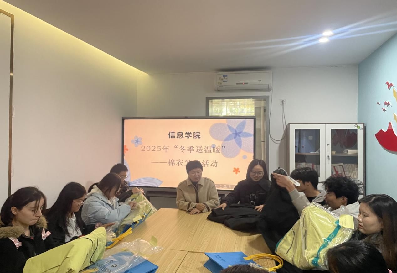 (通讯员 贾茹)为深入贯彻落实国家资助政策,切实关怀家庭经济困难学生的成长与发展,信息学院于11月18日中午,在12栋“一站式”社区101活动室开展了“‘冬季送温暖’棉衣发放活动暨‘助学·筑梦·铸人’学生代表座谈会”。活动旨在物质上给予学生支持,在精神上给予学生鼓舞,让这个冬天充满浓浓的温情与力量。院领导、学生科科长、2025级辅导员参加了座谈,与各班学生代表进行了亲切深入的交流。