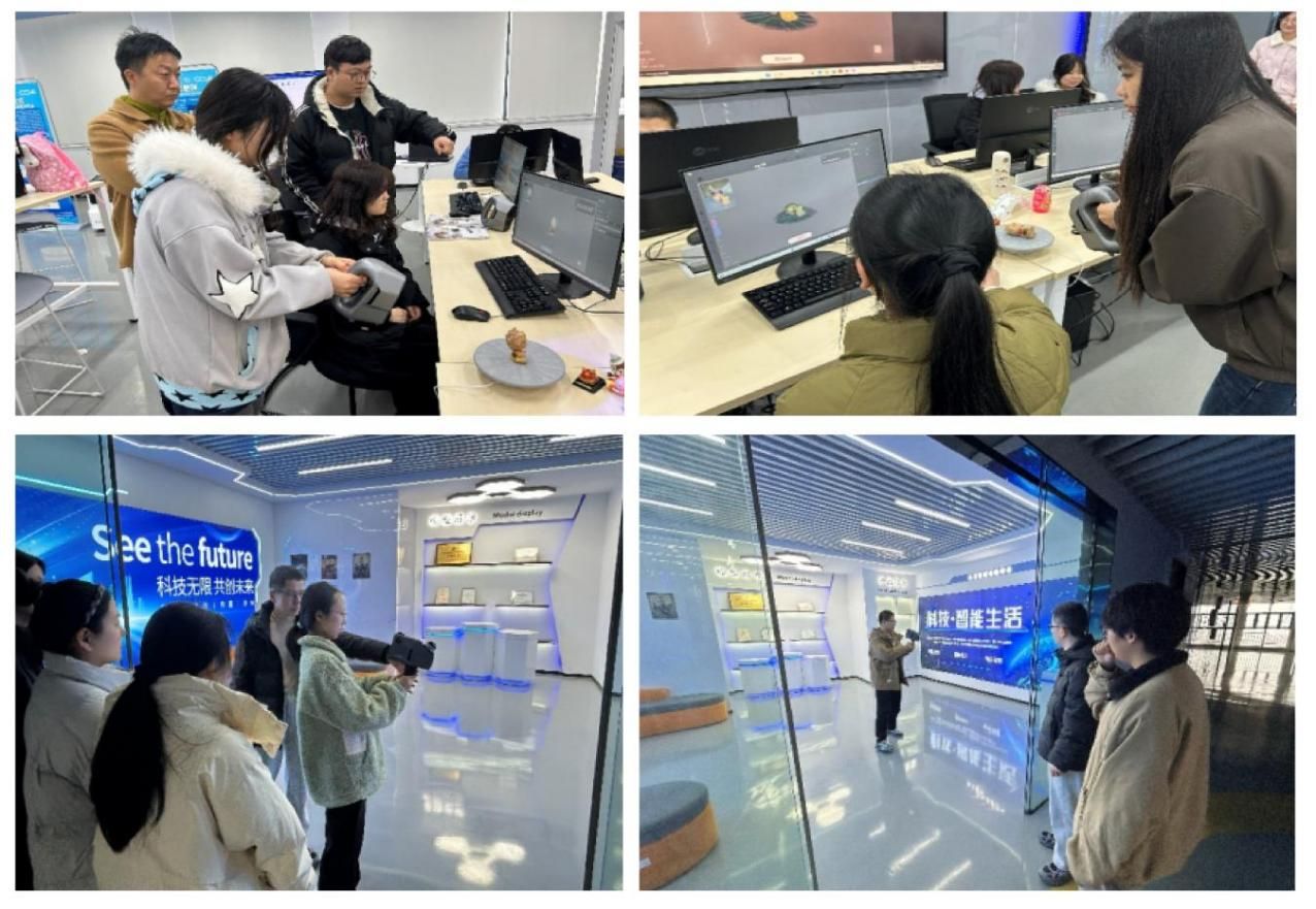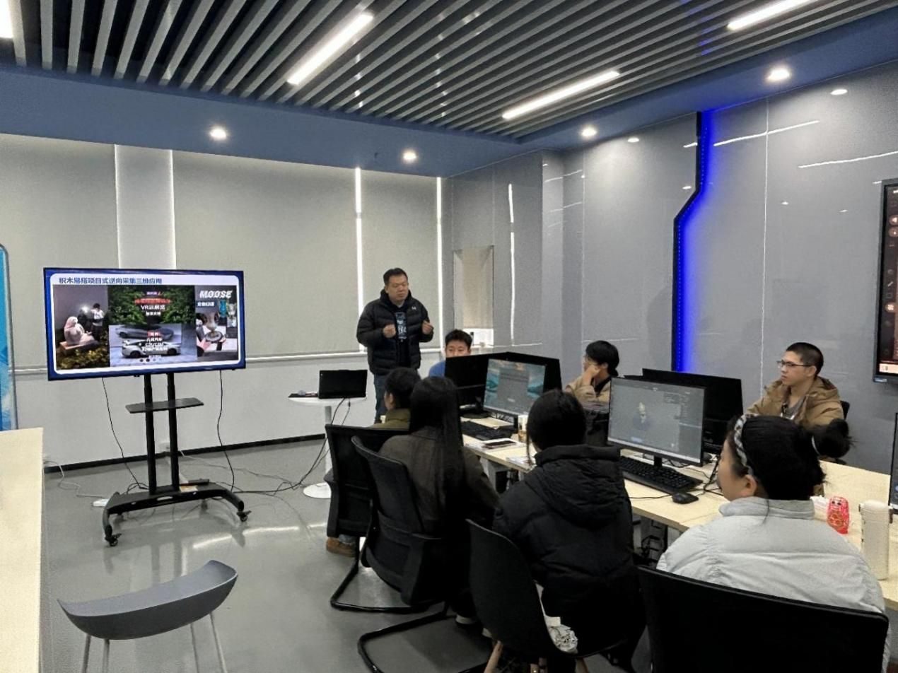 (通讯员 夏敏)为深入推进现代学徒制教学改革,持续深化产教融合与校企协同育人机制,12月30日下午15:00,信息学院在创业大楼11楼科创综合实践实训基地成功举办现代学徒制教学改革观摩活动。本次观摩课程《VR/AR产品开发(劳动教育)——VR/AR产品模型设计》,以“双师协同”为核心授课模式,围绕3D数字化逆向模型工程实践教学的核心内容展开,由数字媒体技术专业专任教师夏敏副教授与企业导师深圳积木易搭科技技术有限公司胡迪高级工程师联合主讲。国家“双高”计划现代通信技术专业群软件技术专业的学科带头人及骨干教师代表全程参与观摩与交流学习。