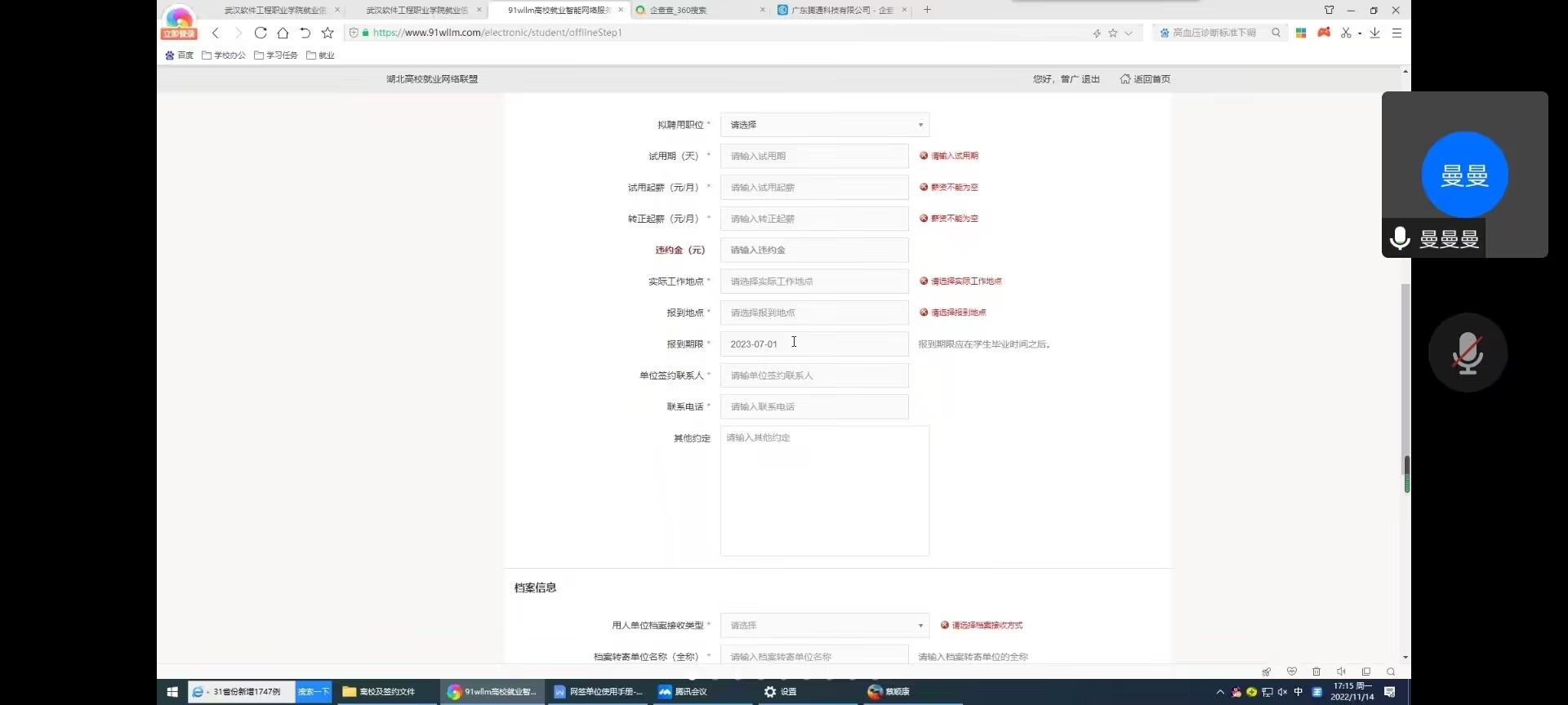 (通讯员:蔡顺康)2022年11月14日,为进一步做好2023届毕业生就业工作,帮助我院毕业生更好地完成91系统填报和相关就业、毕业手续办理。我院特邀吴思曼老师为毕业生班委和辅导员老师做了一次系统填报讲座。这次讲座从学生角度入手,由浅入深,对每一个细节都有认真的解读和指导。
