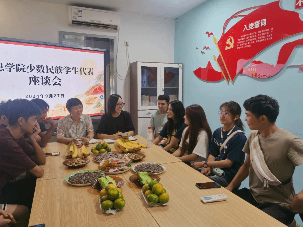 此次少数民族学生代表座谈会是信息学院开展新生入学教育、铸牢中华民族共同体意识教育系列活动内容之一。学院将继续聚焦思想教育与价值引领,多途径、多举措关爱少数民族学生生活学习,让民族团结之树牢牢扎根、开花结果。