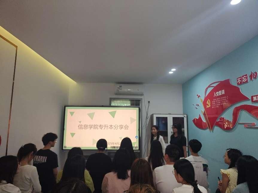 (通讯员:谢毓婷 梁好)4 月 25 日下午,信息学院在一站式学生社区举办专升本经验分享会,邀请往届成功专升本的吴丹丹、温海澜两位学姐,为有升本意向的学子传授备考 “秘籍”,助力他们明晰升学方向。
