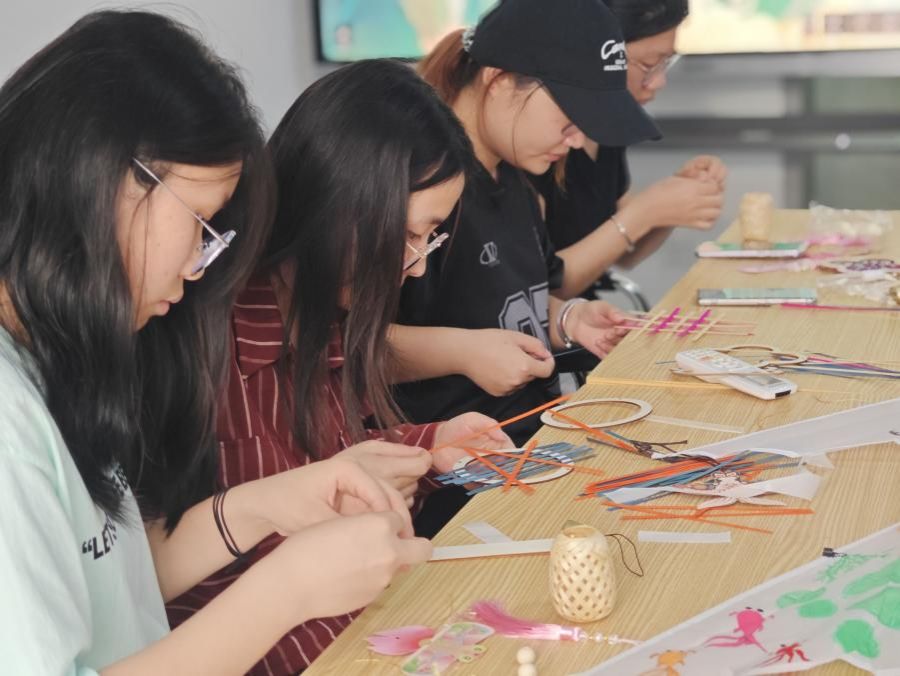 在手绘风筝环节,传统吉祥纹样成为创作主角。同学们勾勒醒狮,寓意 “醒狮点睛,镇宅纳福”;绘制锦鲤,再现 “鱼跃龙门” 的美好愿景;描绘谷雨图景,将柳枝、燕子等节气元素融入画面;用竹片编制竹风铃,用五彩丝线串联起纸鸢造型的吊饰,同学们用制作手工的方式续写新的春日叙事。